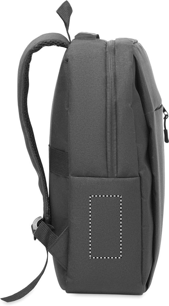 15'''' Laptop-Rucksack aus 600D RPET Polyester mit 210D Futter. 15'''' Laptopfach, 10'''' Tablet-Außentasche mit Reißverschluss, 2 Innentaschen, 2 Stifthalter, 2 Seitentaschen. Weich gepolsterte Rücken- und Schultergurte. Rückseitige Trolley-Halterung.