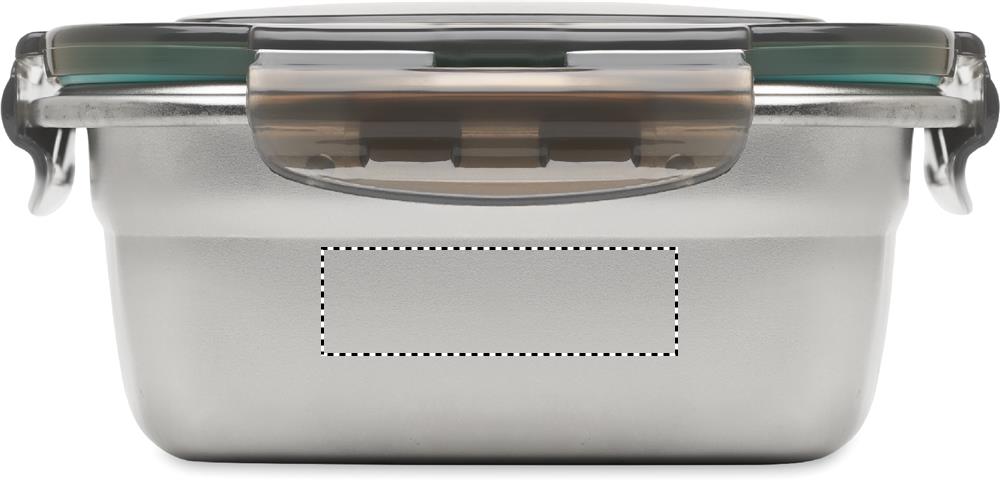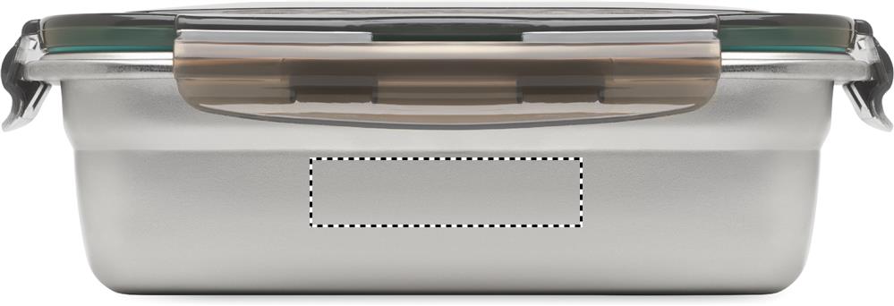 Lunchbox aus recyceltem Edelstahl mit Deckel aus recyceltem PP und 4-seitigem Klickverschluss. Füllmenge: 850 ml.