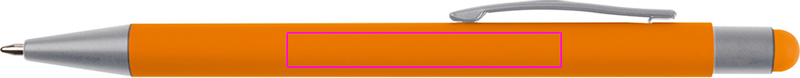 Metallkugelschreiber mit gummierter Oberfläche, Touchpen und blauschreibender Großraummine. Ihre Werbung lasern wir auf die rechte Seite des Clips.