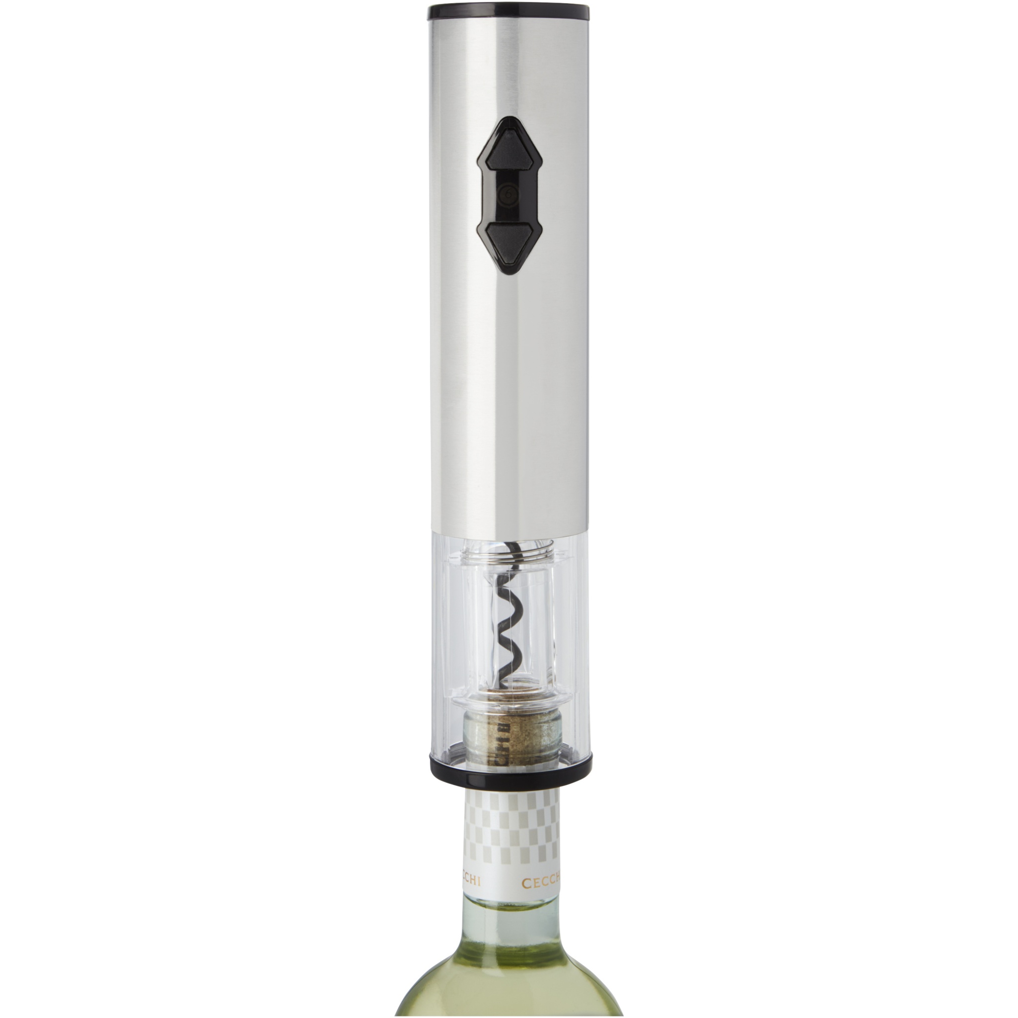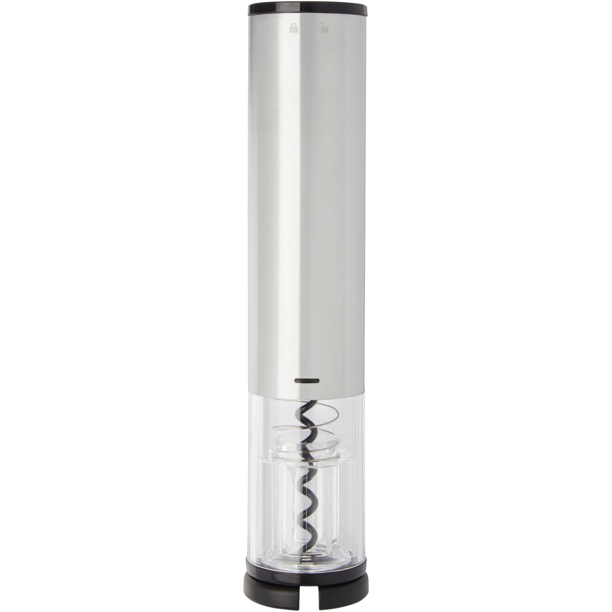 Elektrischer Korkenzieher in Kombination mit einem Kapselschneider, einem Ausgießer und einem Stopfen. Funktioniert mit 4 AA-Batterien (nicht im Lieferumfang enthalten).