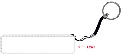 Powerbank 2200 mAh mit Schlüsselring. Geeignet zum Betrieb von Smartphones. Ausgangsstrom DC5V/1A. Inklusive Micro-USB-Kabel.