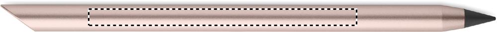 Langlebiger Stift aus recyceltem Aluminium ohne Tinte. Der Stift schreibt mittels Grafitspitze, die durch eine Kunststoffkappe geschützt ist.