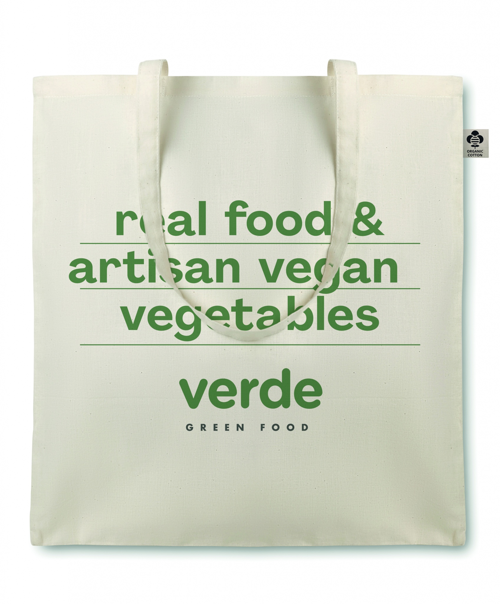 Organic cotton shopping bag with long handles. 105 gr/m².