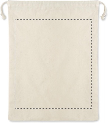 Re-usable food bag. One side is in cotton (140gr/m²) and other one is in mesh cotton (110gr/m²). Drawstring closure.