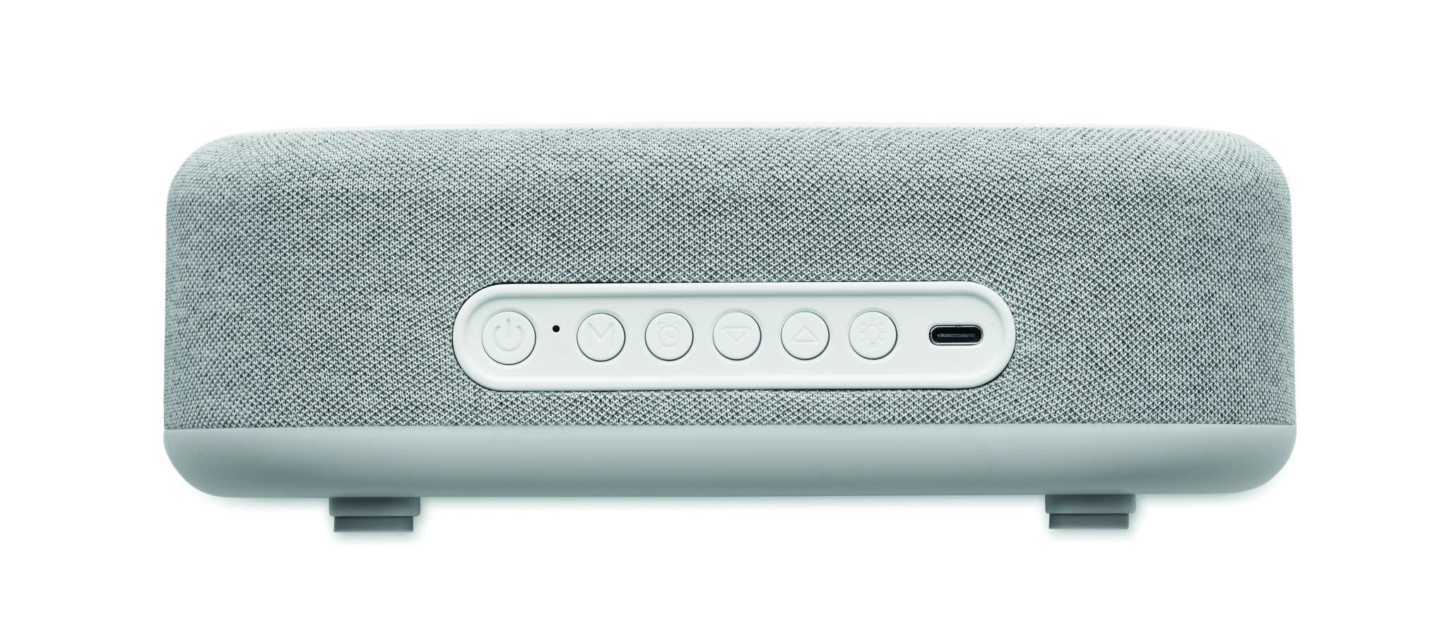 4-in-1 wireless 15W charging 5W speaker in ABS with weather station and ambient light. Alarm clock. Time and temperature display. Built-in Li-Iin battery: 1200 mAh. Playing time approx. 7 hours.