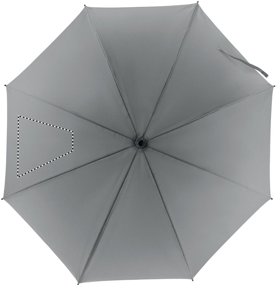 23 inch manual open windproof umbrella in high reflective polyester with fiberglass shaft and ribs. Black plastic tips and top. Black rubberised grip. Manual closure.