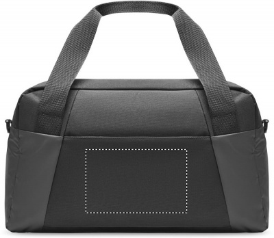 Travel or sports bag in 300D ripstop with PU details with front zippered pocket. It has an inside pocket and 2 small padded compartments. Trolley holder on back side.
