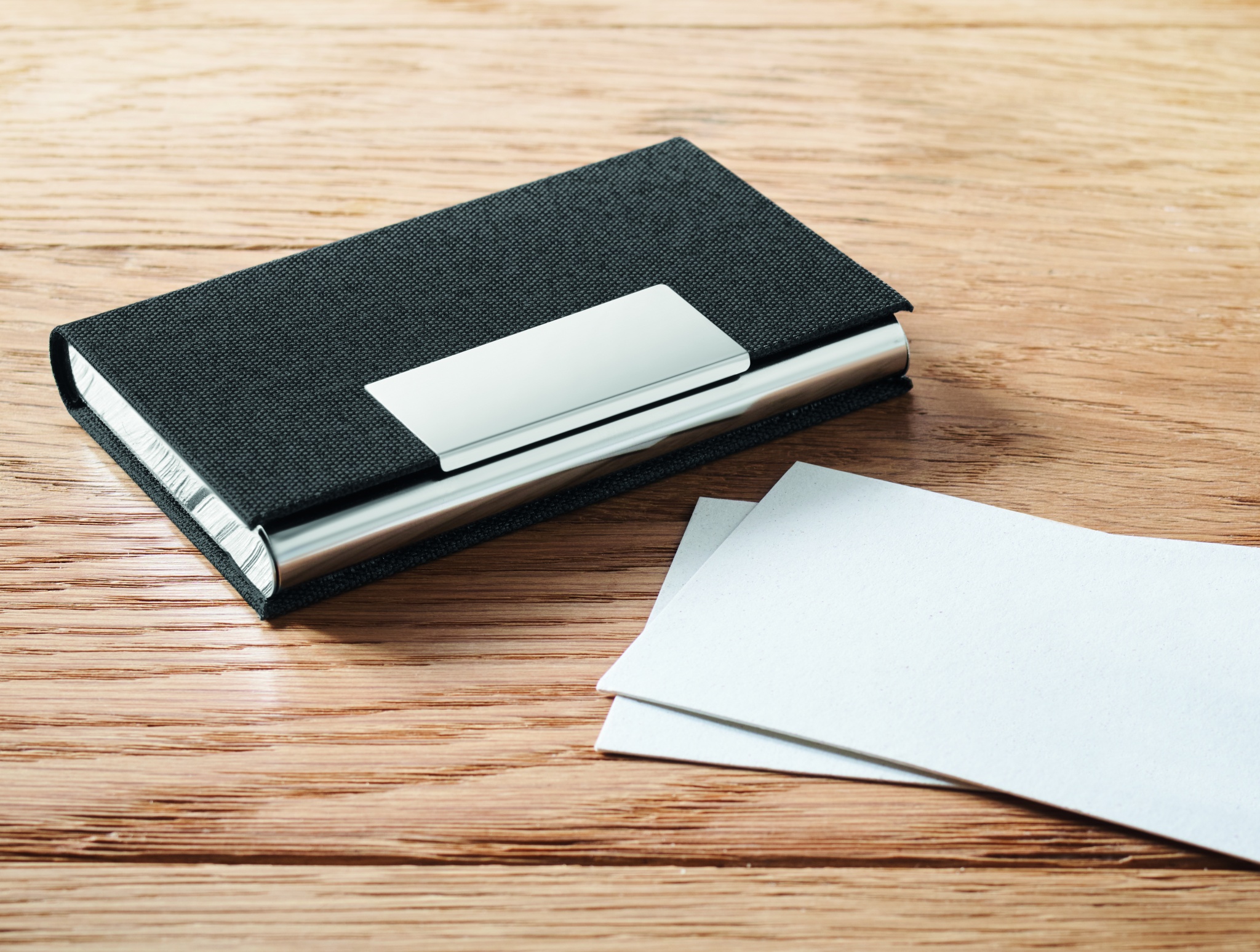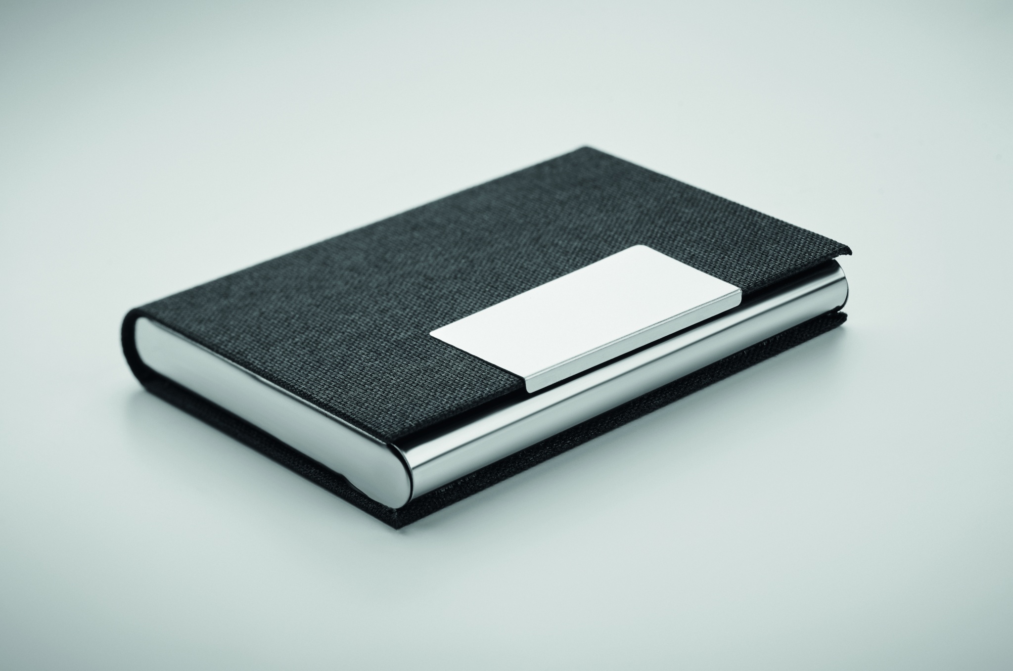 3 piece gift set in gift box. Including metal twist ball pen with RPET polyester detail, RPET polyester key ring and RPET polyester cardholder with metal plate. Blue ink.