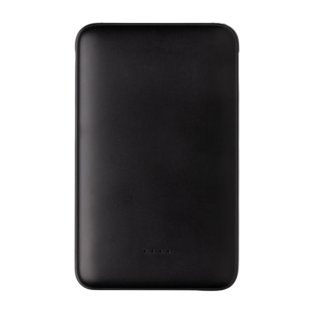 Compact and flat 5.000 mAh powerbank made out of ABS that is easy to take with you wherever you go. With the 3 in 1 integrated TPE cables the powerbank is compatible with all mobile devices in the market and directly ready for use. When fully charged it will provide you with enough energy to re-charge your mobile phone up to two times. The powerbank contains a long lasting grade A 5000 mAh high-density lithium polymer battery. The power indicators will indicate the remaining energy level so you always know when to re-charge. Input: 5V/2A Output 5V/2A.