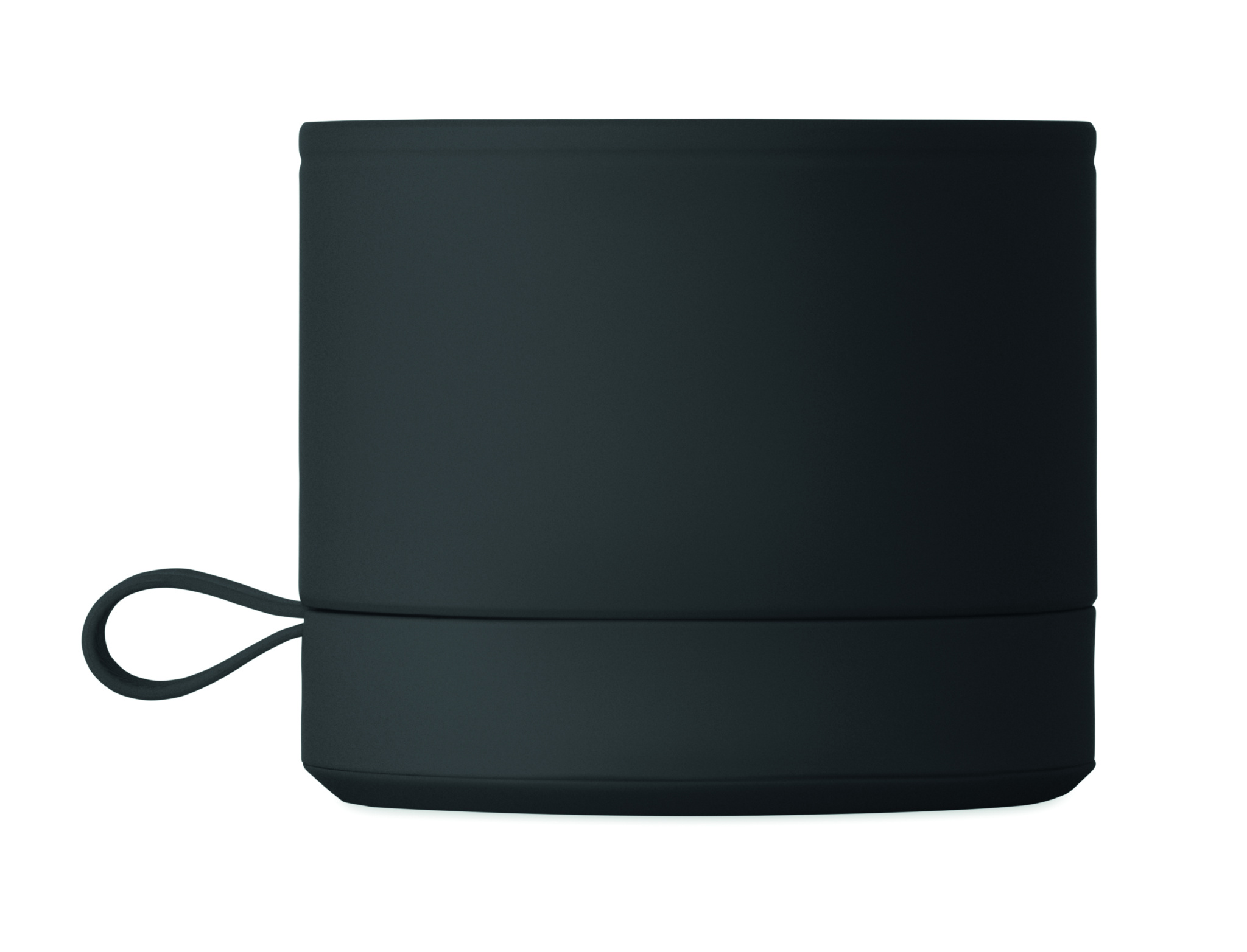 Wireless 5.1 speaker with metal body and rubber finish. Features 3W mono sound. Includes rechargeable and replaceable 500mAh battery. Compact and modern design.