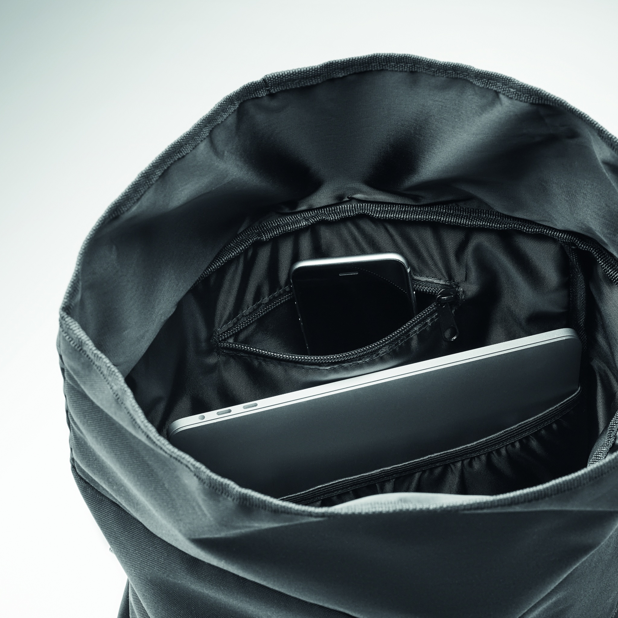 Products Electronics Powerbank 600D RPET rolltop backpack