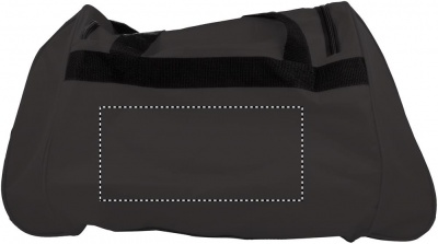 Sport or travelling bag in 600D polyester with front pocket and adjustable and detachable shoulder strap.