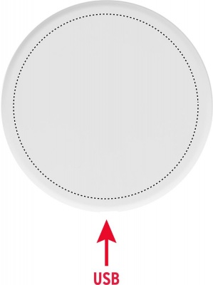 Recycled ABS wireless charger. Connect to your computer, place smartphone on device to commence charging. Output: DC 9V/1.1A (10W) for quick charging. Compatible latest androids, iPhone® 8, X and newer.