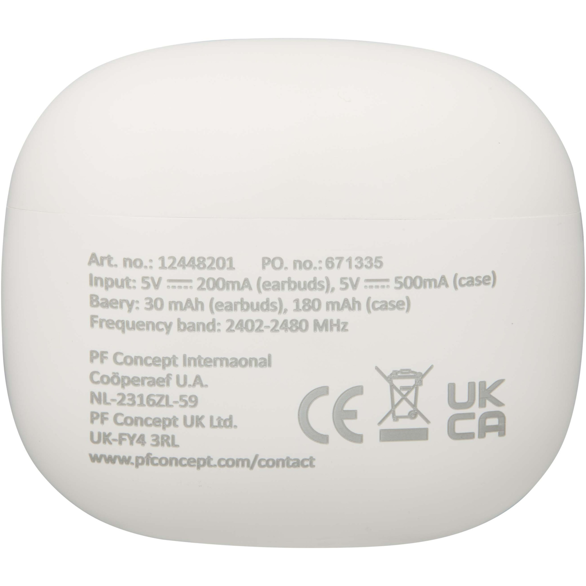 Alterf recycled plastic True Wireless Bluetooth® headset with silicone eartips, White