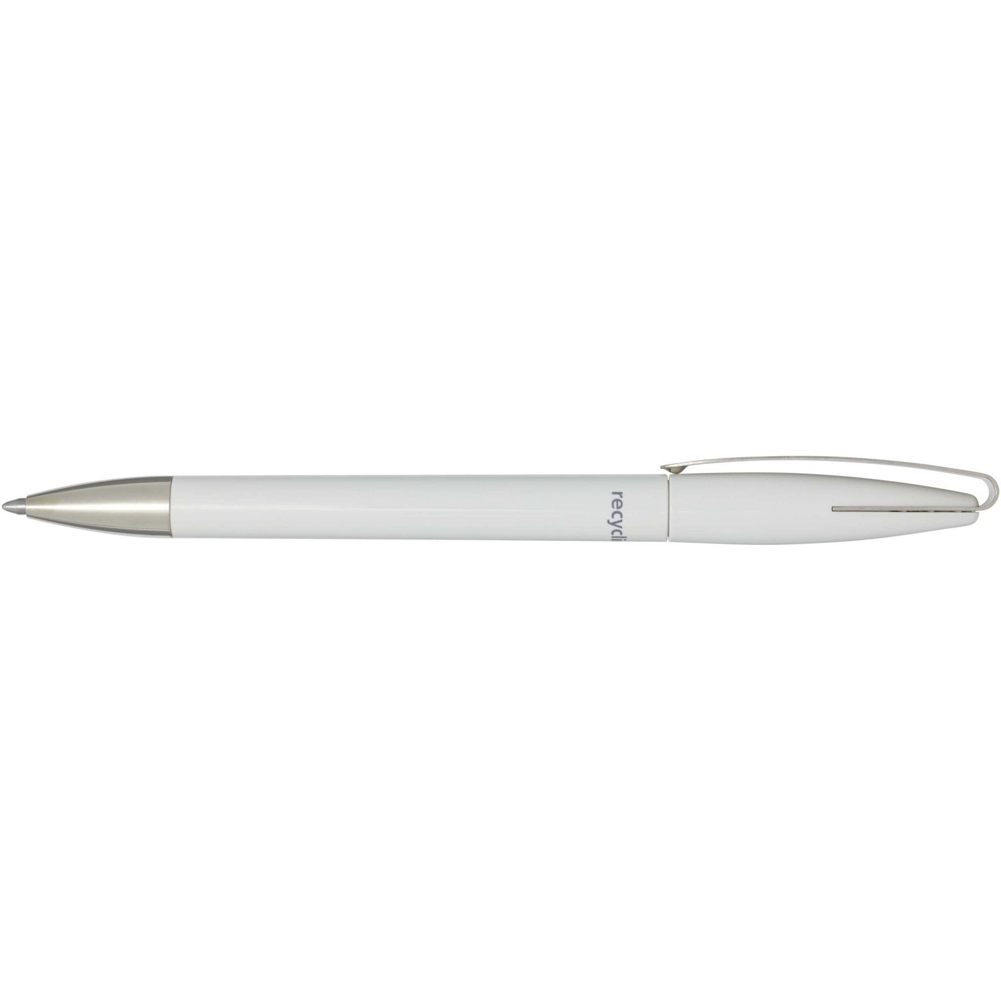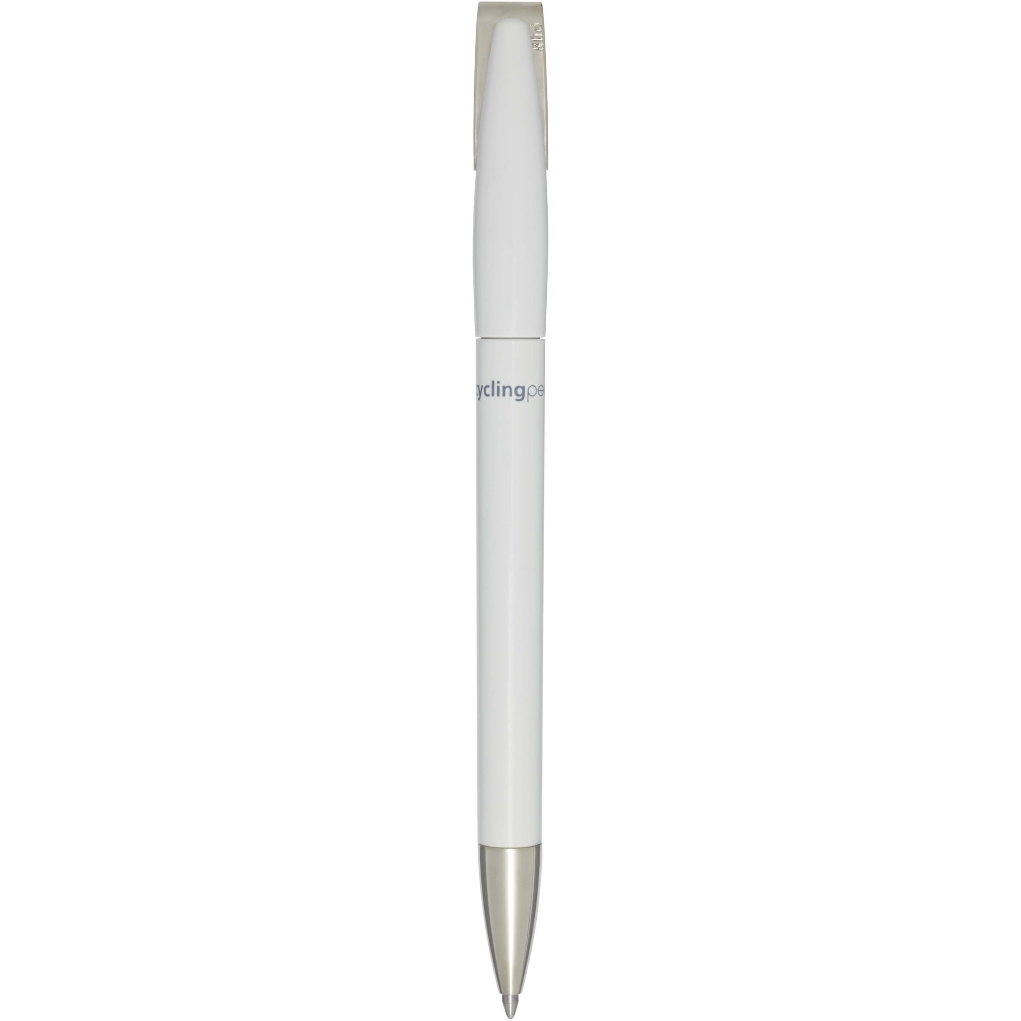 Ballpoint pen with the barrel and clip made of recycled plastic, and the tip made of stainless steel. Ink colour: Blue. Writing length: 3000 metres. Nib size: 1.00 mm. Made in Germany.