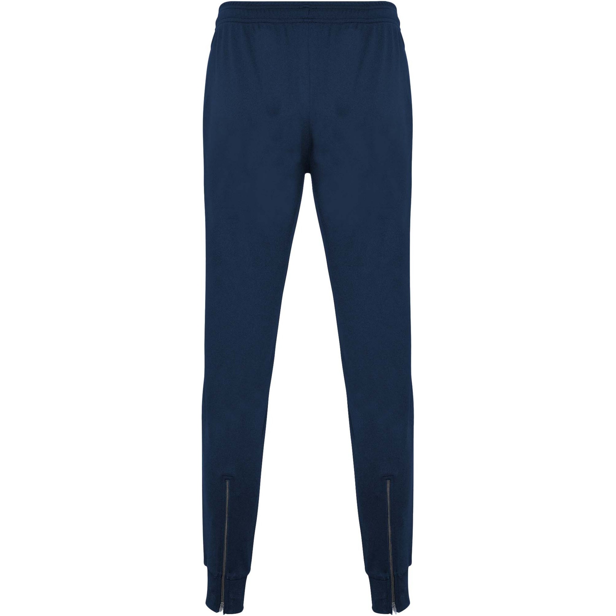 Trousers with adjustable elastic waistband with inner drawcord. Side pockets. Cuffs and zip on bottom leg. Removable label.
