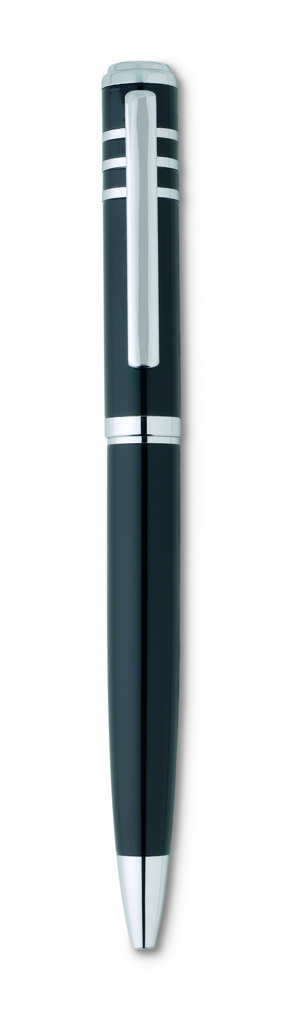 Metal twist ball pen with shiny lacquer finish in carton gift box. Black ink.