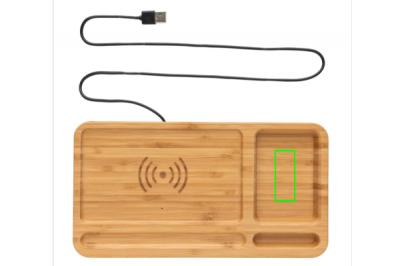 Logo trade promotional products picture of: Bamboo desk organiser 10W wireless charger