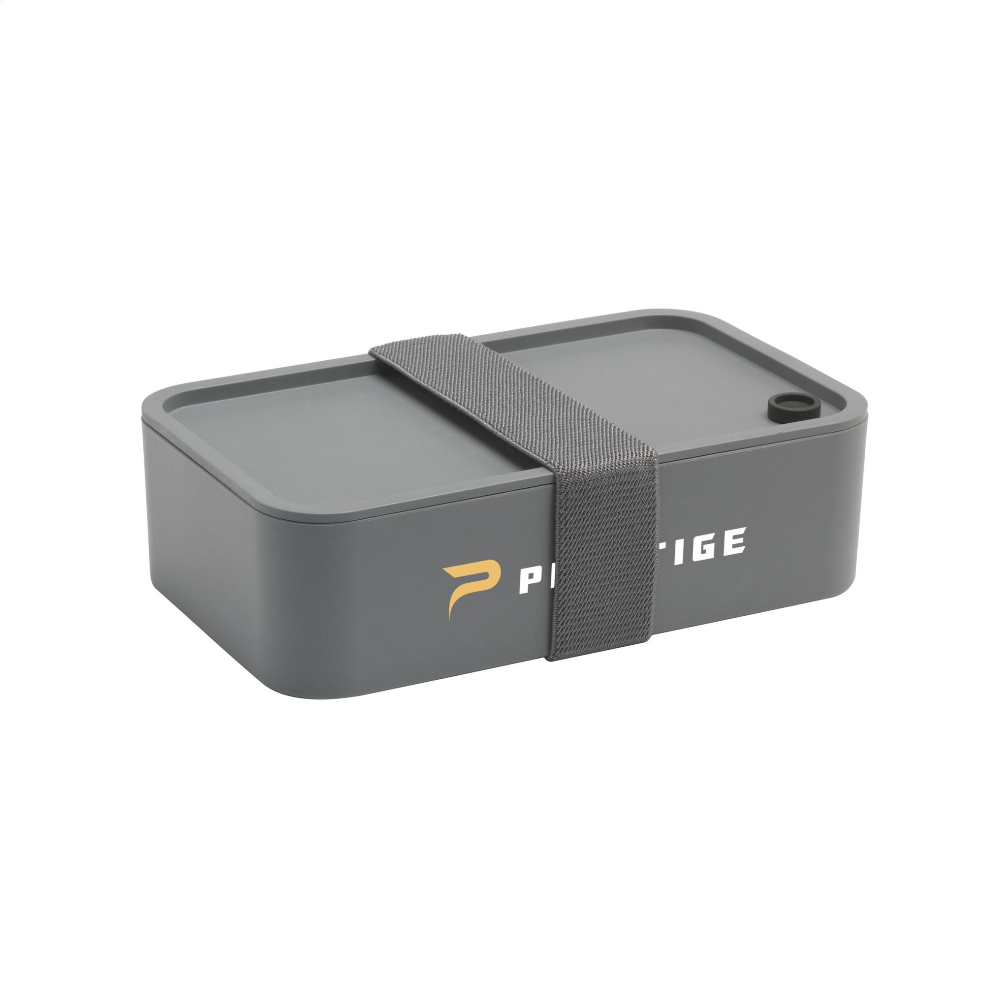 Lunch box made from PP plastic. The close-fitting lid has a silicone sealing ring with ventilation opening and a silicone cap. An elastic strap ensures that the lid stays in place on the go. This product includes a 3-in-1 fork, spoon and knife and a removable divider. This lunch box can be put in to the refrigerator making it the perfect airtight container for fresh food. Durable and environmentally friendly. Suitable for use in the microwave and freezer.