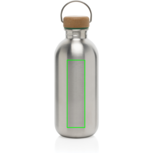 A lightweight and compact 600ml high quality stainless steel bottle with a sustainably sourced PP lid. The stainless steel and PP lid feature a convenient carry loop. Handwash only