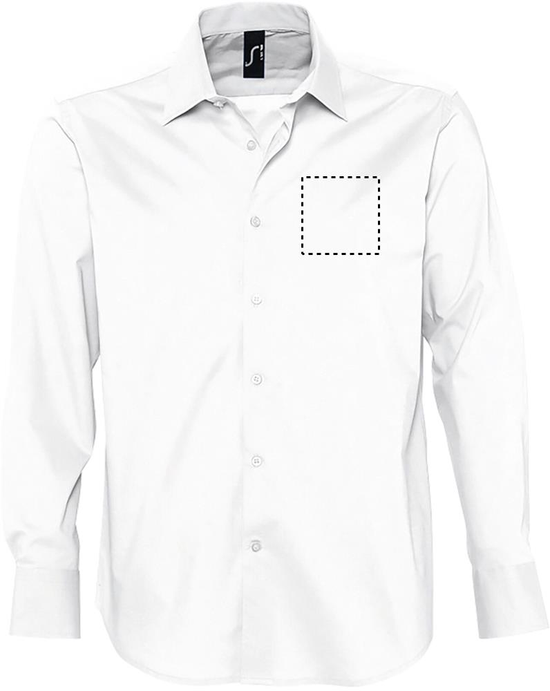 SOL'S BRIGHTON, long sleeve stretch men's shirt, 97% cotton - 3% elastane poplin stretch 140, fitted cut, long sleeves, single button collar, cuffs with 2 buttons and bound slit, 7 tone-on-tone button placket. About sizes matching, please refer to the size chart in the product documentation section.
