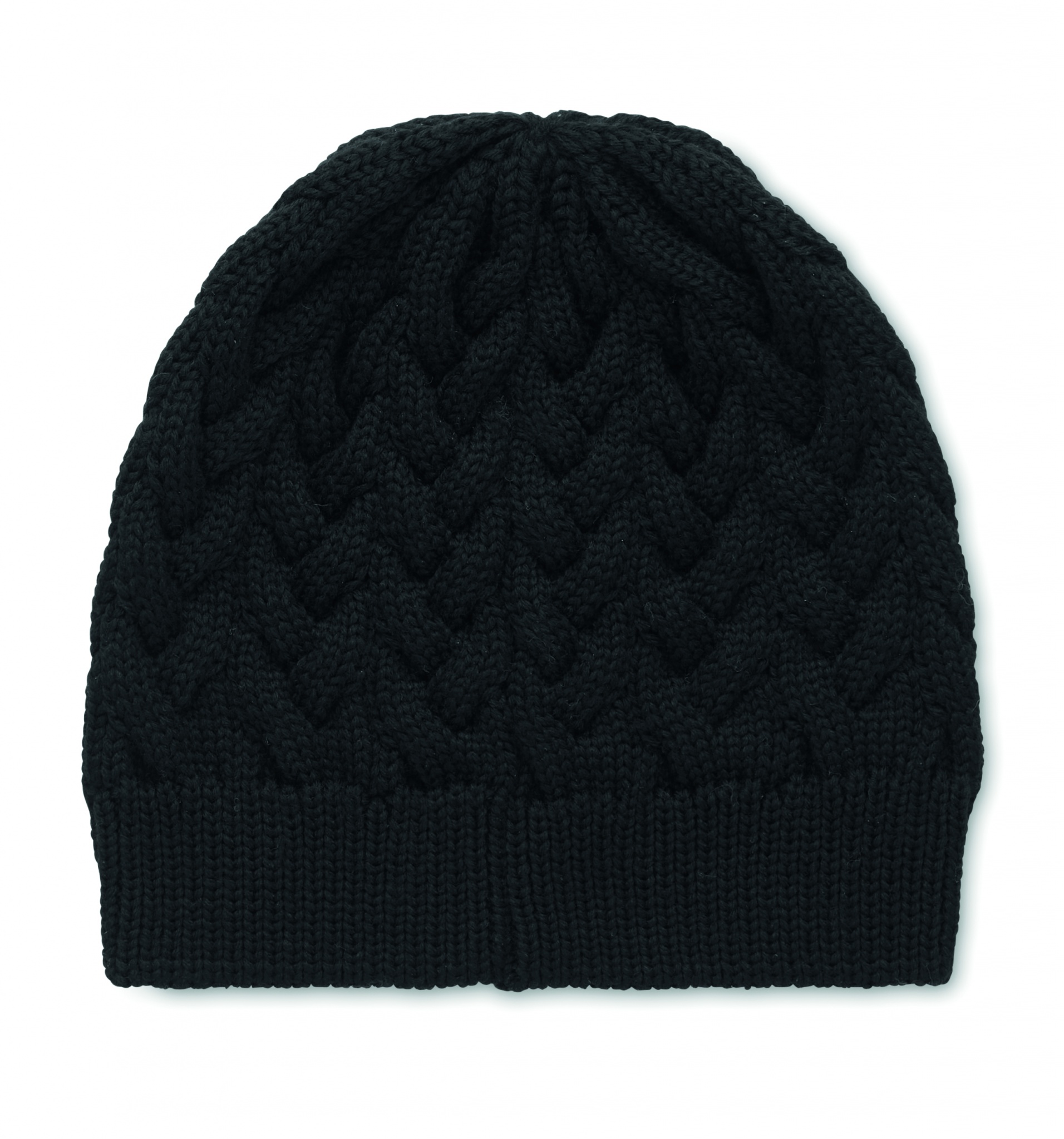 Logo trade promotional merchandise picture of: Cable knit beanie in RPET