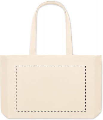 Recycled canvas shopping bag or beach bag, 50% cotton and 50% recycled cotton with long handles and gusset. 280 gr/m².