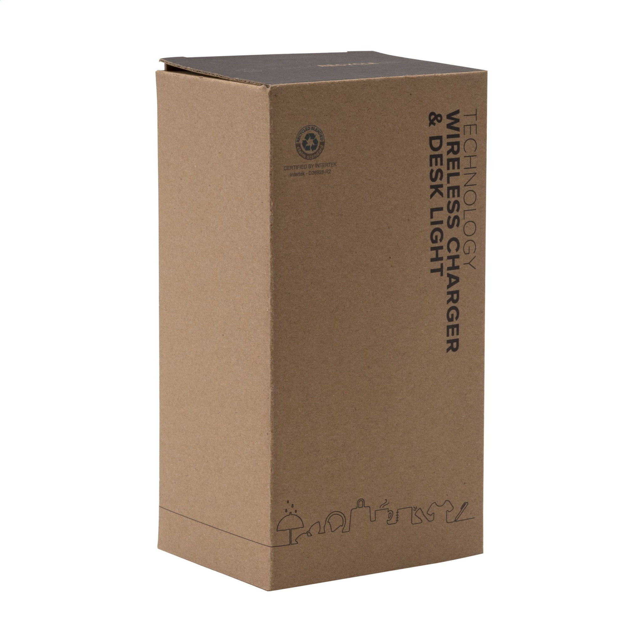 Stylish desk lamp with wireless charger made from recycled ABS. The lamp is equipped with a flexible shade arm and the LED light can be set to three different levels of brightness. To charge your phone, simply place it on to the base of the lamp. The 10W charger is compatible with all mobile devices that support QI wireless charging (latest generation Android and iPhone 8 and above). Input: Type-C input 9V/1.5A. Wireless output: 10W. Includes a cable with USB-C connection and user manual. Each item is supplied in an individual brown cardboard box.