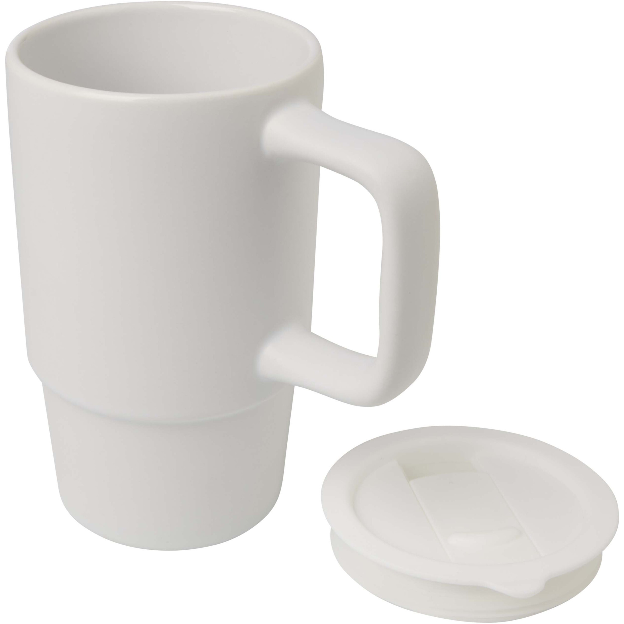 Carter 450 ml ceramic mug with plastic lid, White