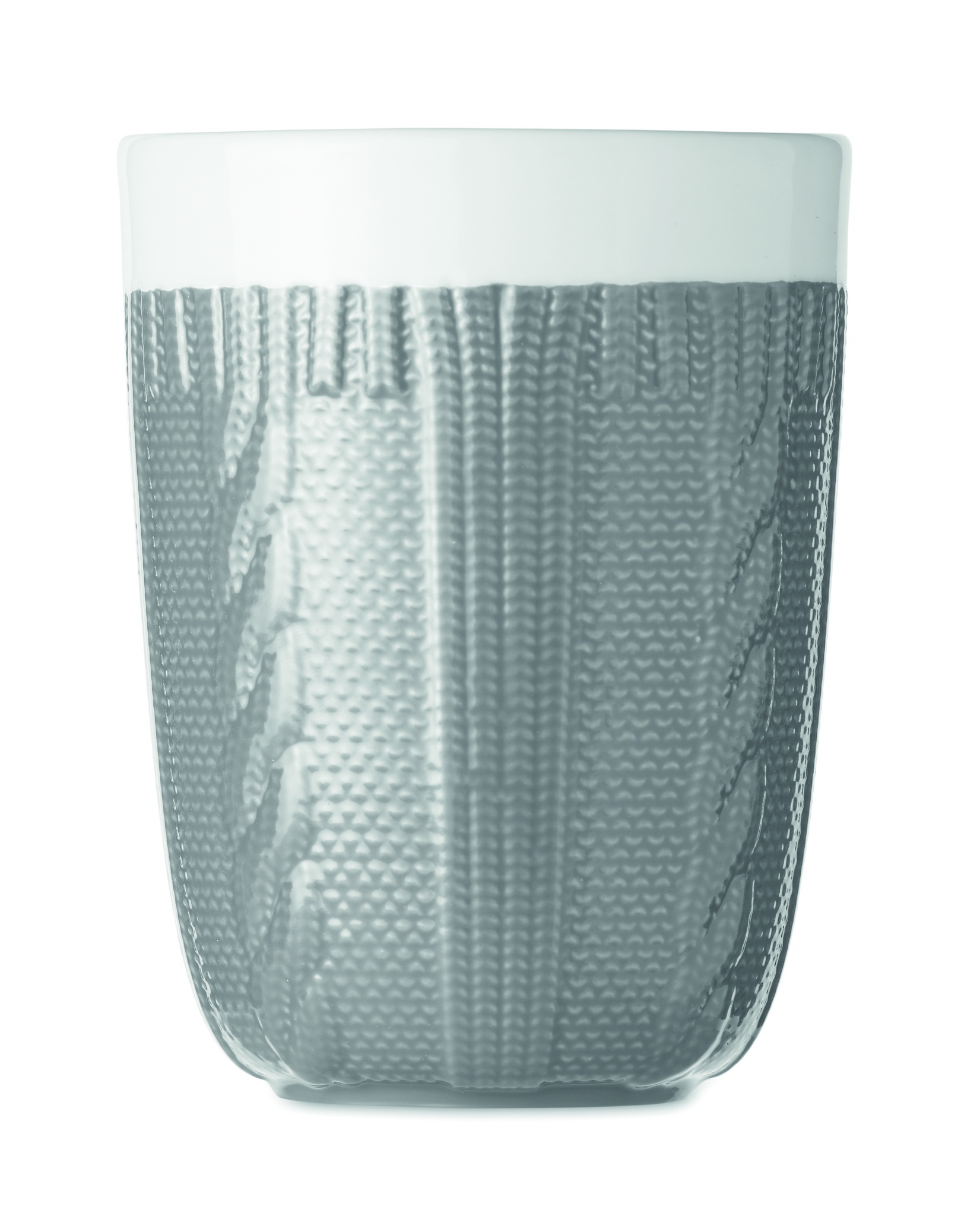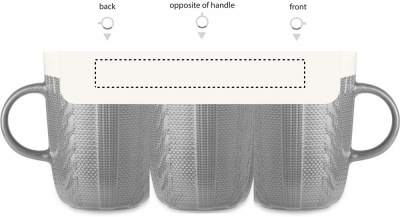 Knitted look design ceramic mug. Capacity: 310 ml. Presented in individual box.