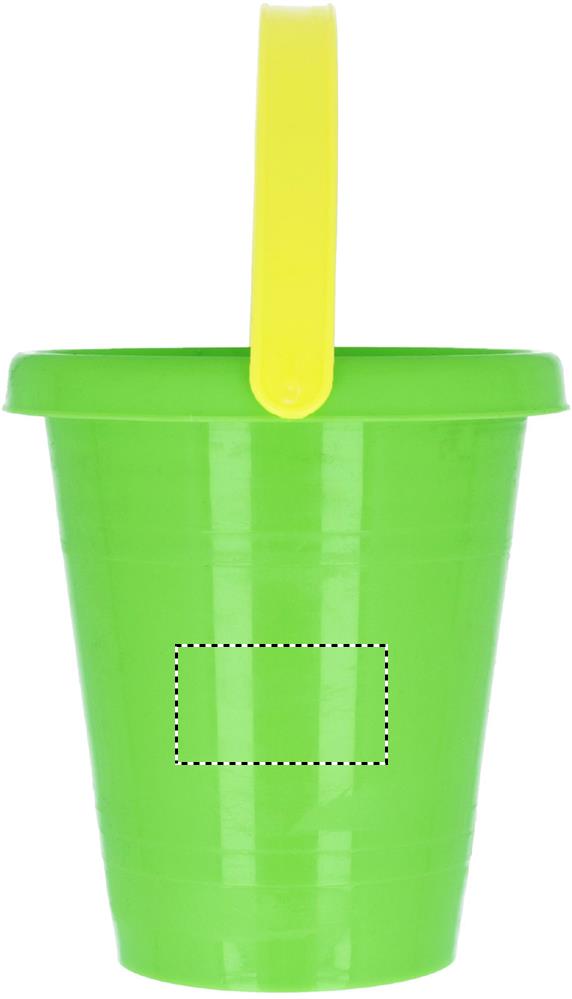 Children sand game composed of a bucket, a shovel, a rake and 2 moulds to make nice sand models. All made in shiny PP.