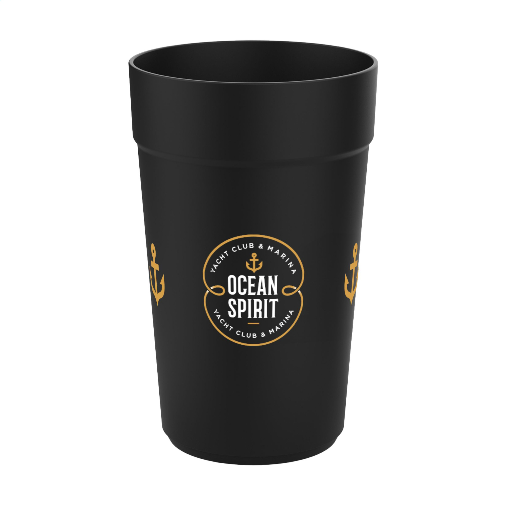 Reusable, stackable cup from the Circulware brand. Including full colour print. This cup is made from high-quality plastic and can be used up to 500 times. The generous size makes it ideal for coffee or tea, hot soup, a refreshing smoothie or a milkshake. A great alternative to the disposable cup. This cup is lightweight, easy to clean and stackable, and a great space saver. BPA-free and Food Approved. Dishwasher safe and microwave safe. 100% recyclable. This cup contributes to a circular economy. The surface is ideal for a full colour iMould print (water, scratch, colour and UV resistant) of any design. Dutch design. Made in Holland. Capacity 400 ml.