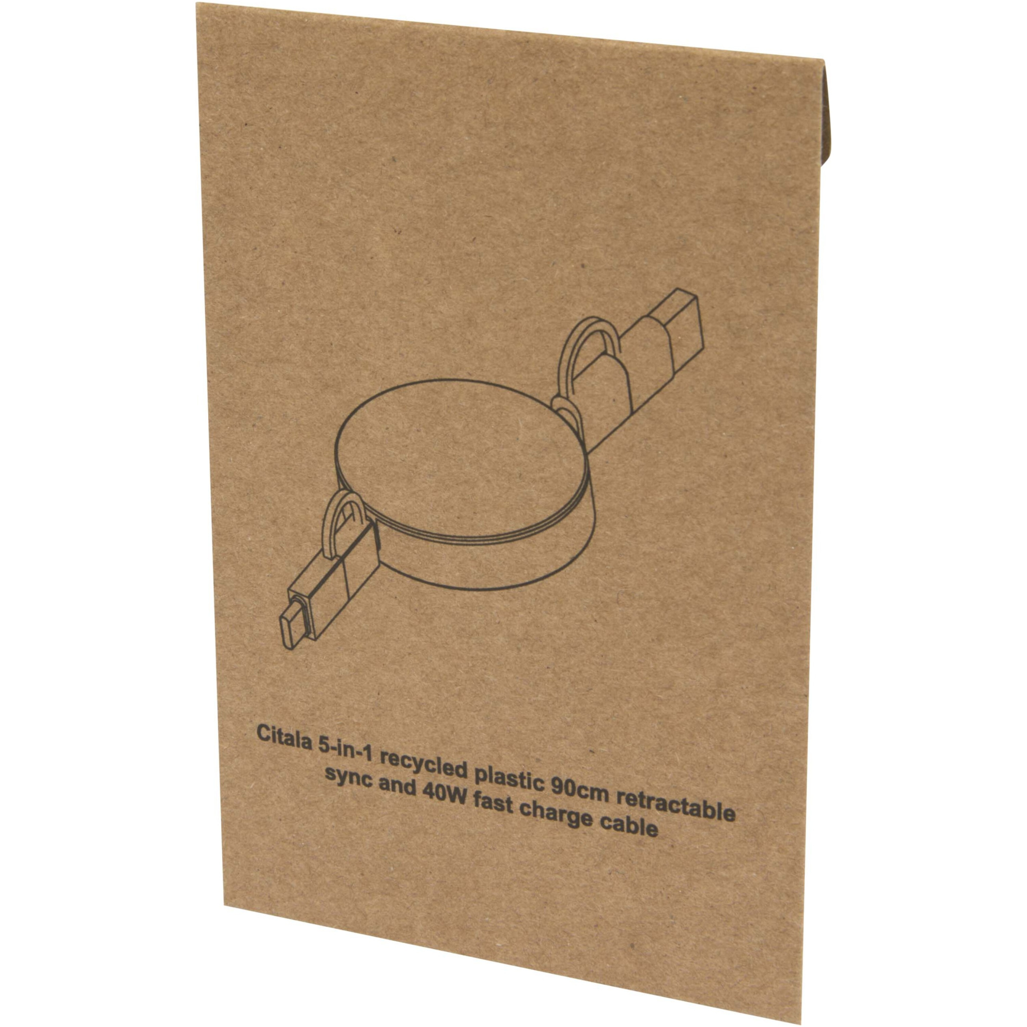Citala 5-in-1 recycled plastic 90 cm retractable data sync and 40W fast charge cable