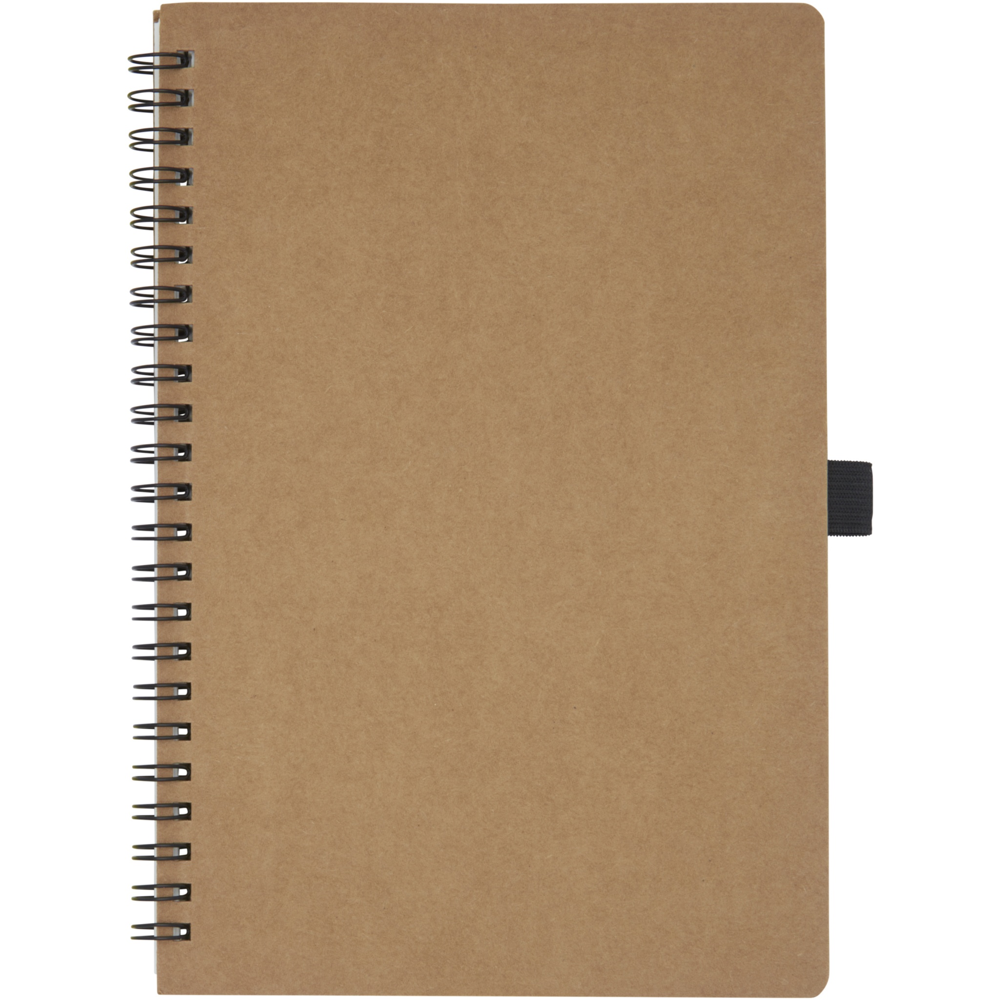 A5-size wire-o recycled cardboard cover notebook with pen loop. Features 70 sheets 60 g/m² lined inner pages made from stone. Stone paper is 100% tree free and the production process uses less energy compared to recycled or new pulp paper. The paper is water and tear resistant and has a natural white colour (no bleaching involved).