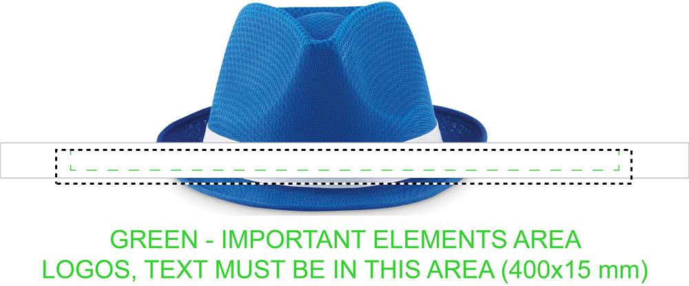 Coloured hat in polyester straw with white coloured band. For unprinted orders the band will be supplied unattached to the items