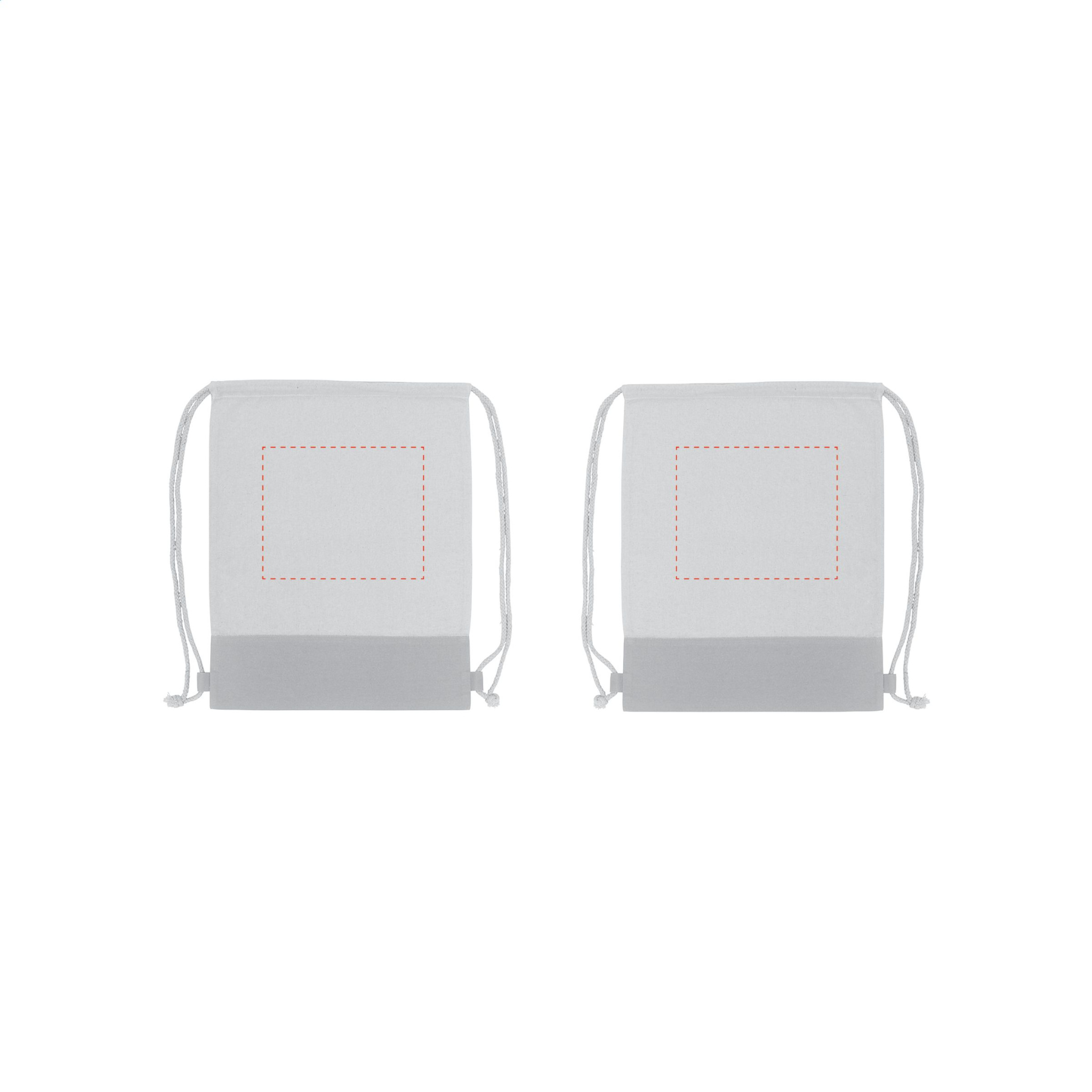 Backpack with drawstrings made from 100% cotton (125 g/m²) and a coloured inlay. Capacity approx. 8 liters.