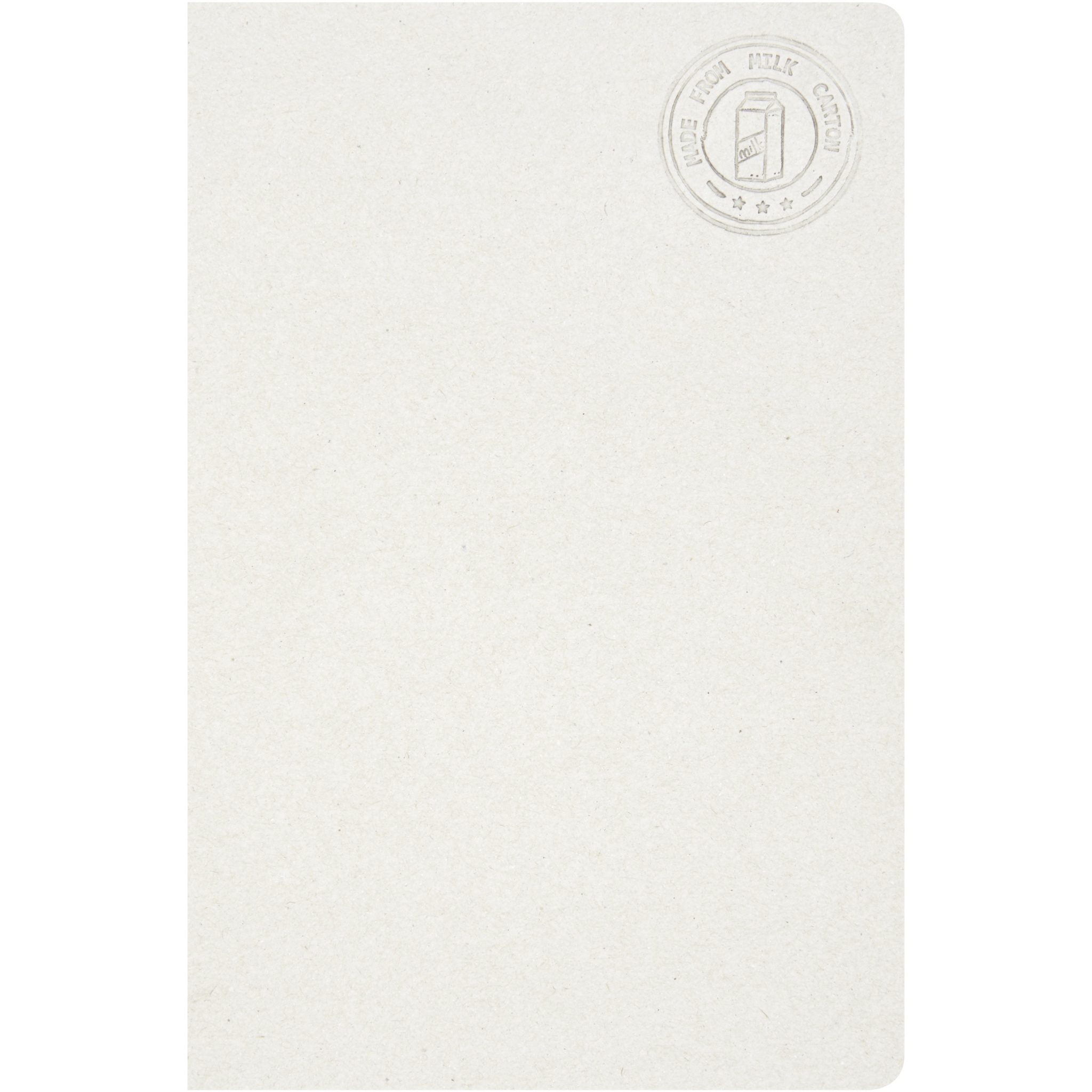 A5 size reference spineless notebook with 80 80 g/m² lined sheets, made from recycled milk cartons (up to 70%). Used milk cartons are collected, sorted, processed and turned into paper, truly turning waste into something useful.