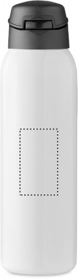 Double wall stainless steel vacuum insulated bottle with integrated straw or mouth piece and lid with hanger. Capacity 580 ml.