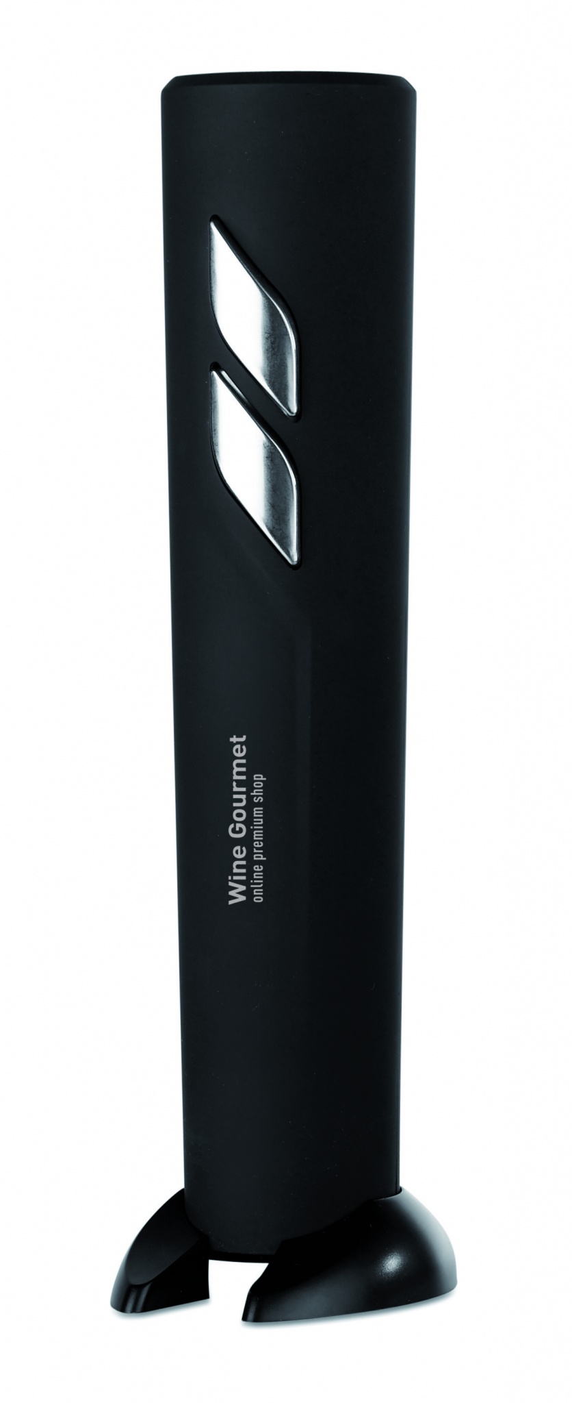 Electric wine bottle opener in ABS housing in black matt finish. Includes a foil cutter stand. 4 AA batteries not included.