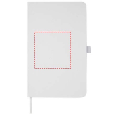 Lightweight hard cover notebook for everyday notetaking with a cover made from responsible sourced materials. The brown cover contains residue of coffee, the green cover includes residue of olives, and the white from corn. Features 80 sheets (70 g/m²) recycled white lined paper.