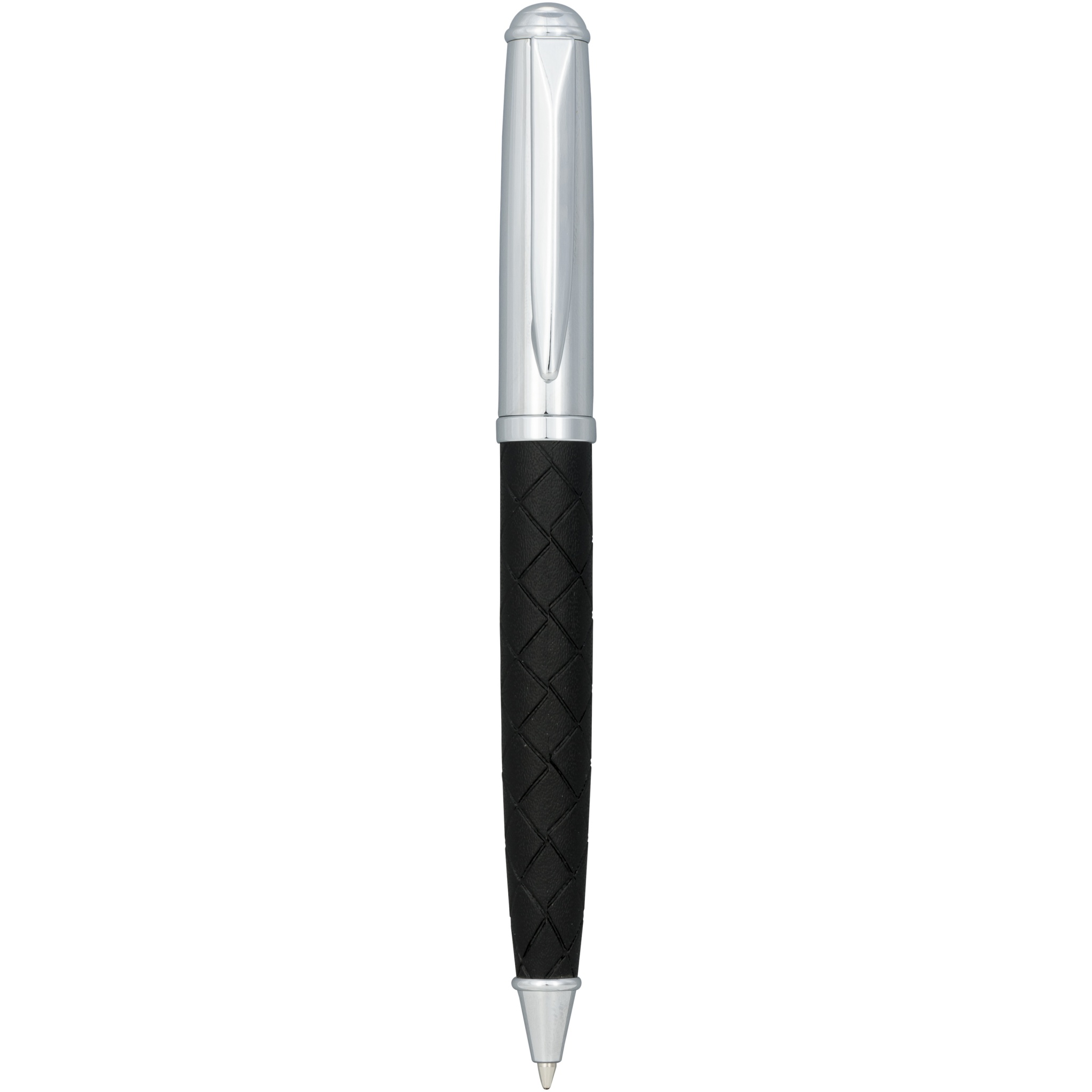 Exclusively designed ballpoint pen with leather wrapped lower barrel featuring a cross line pattern. Includes a premium black refill and packed in a ''LUXE'' gift box (16x4.5x2.5cm).