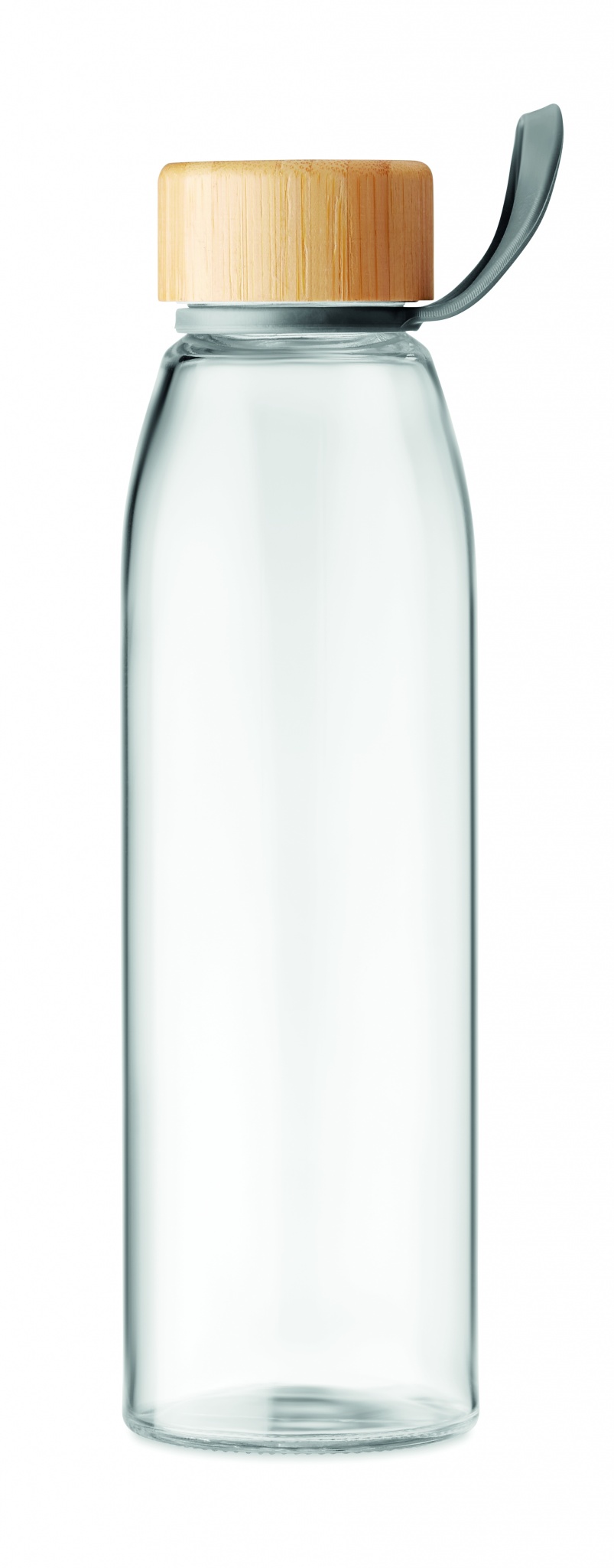 Glass bottle with bamboo lid and TPU holder. Not suitable for carbonated drinks. Capacity: 500 ml. Leak free. Bamboo is a natural product, there may be slight variations in colour and size per item, which can affect the final decoration outcome.