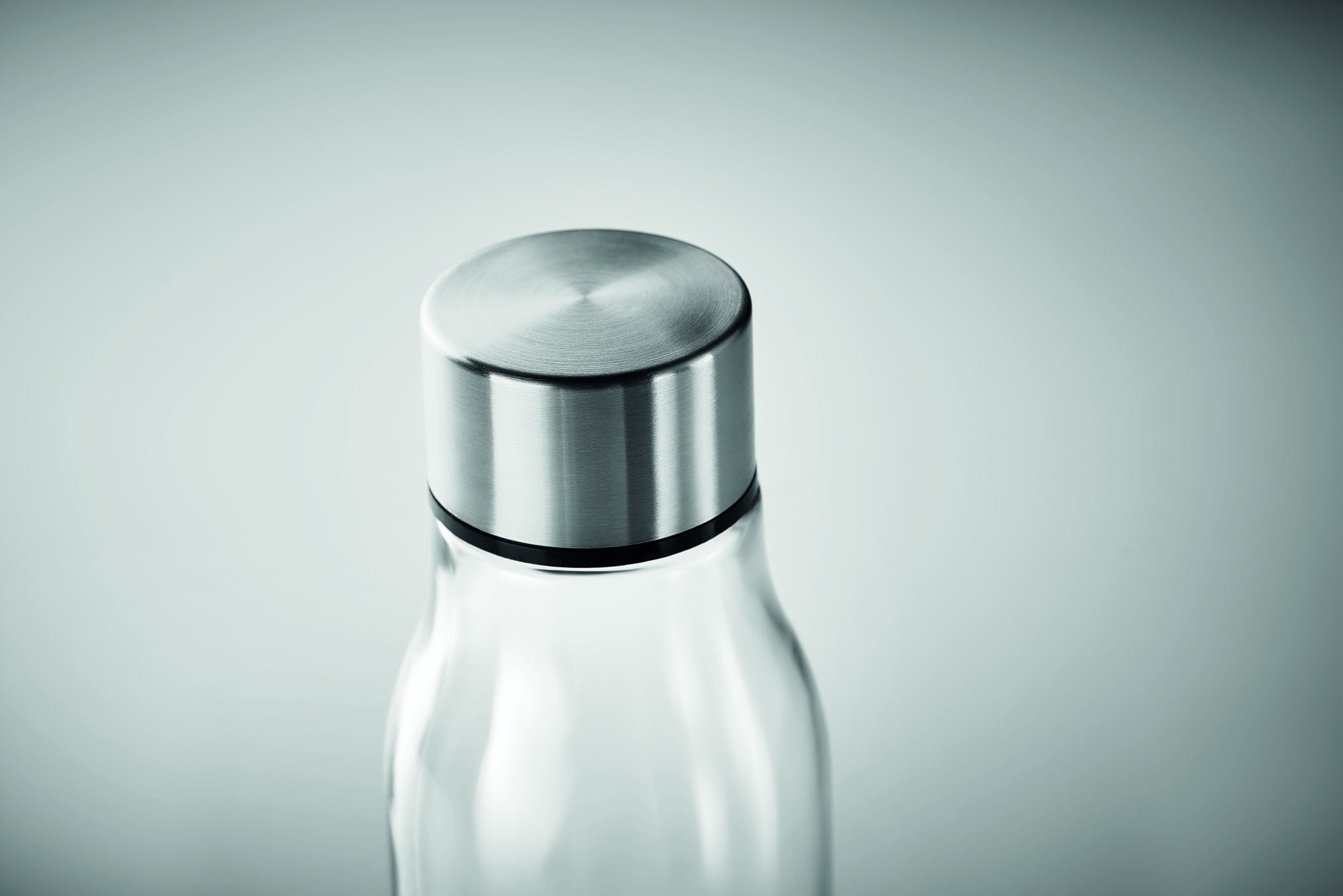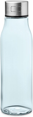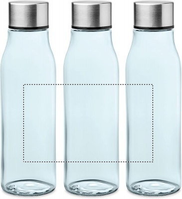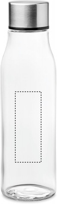 Glass drinking bottle with stainless steel lid. Capacity: 500 ml. Not suitable for carbonated drinks. Leak free.
