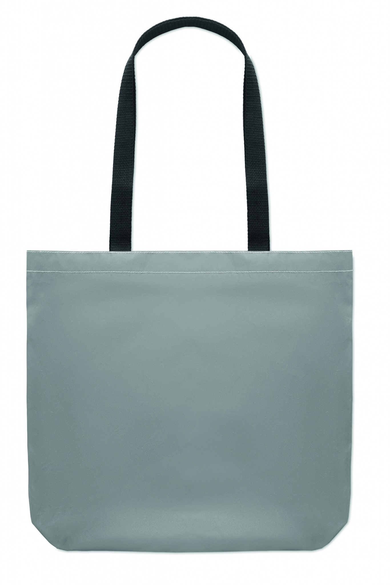 Shopping bag in high reflective 190D polyester with long handles.