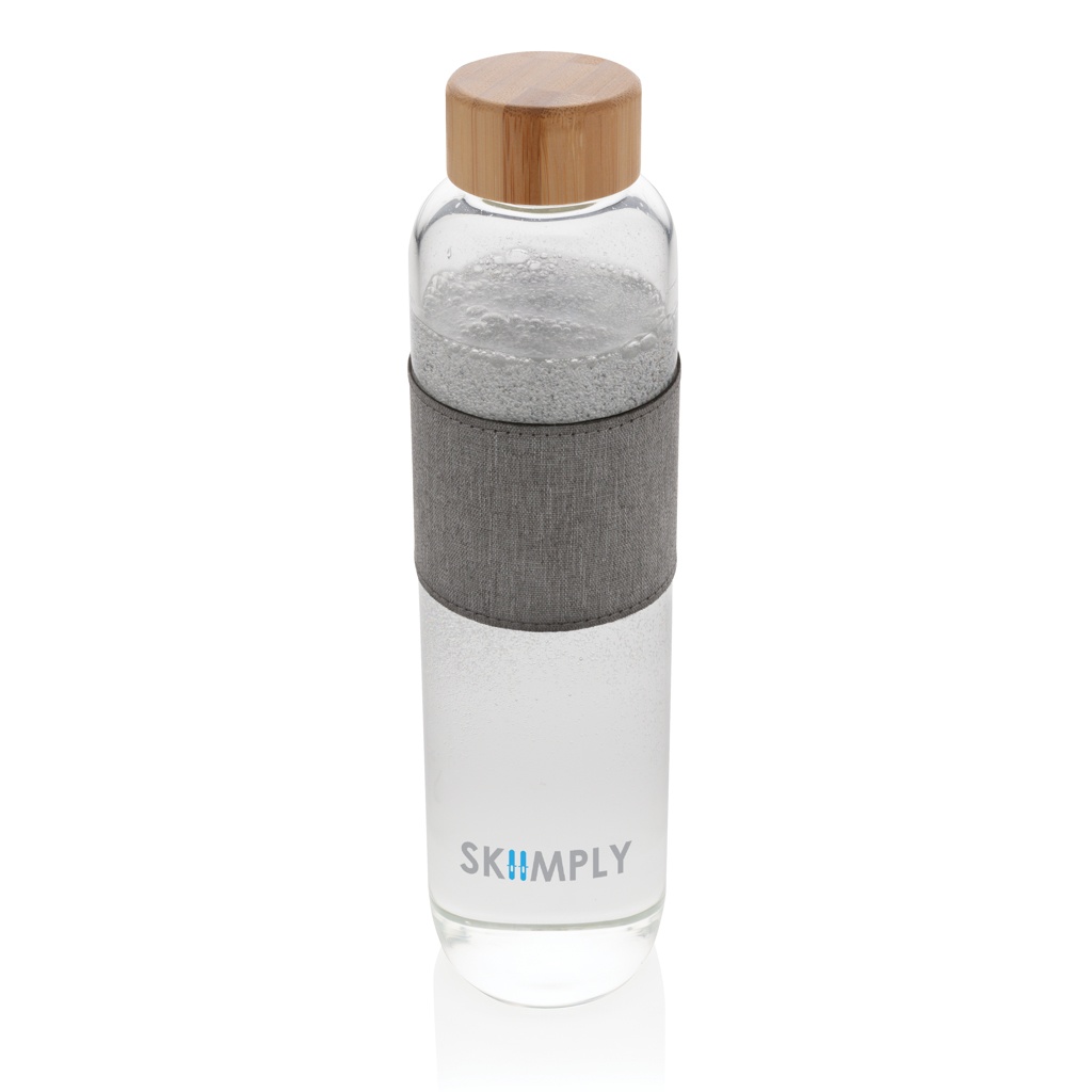 Impact borosilicate glass bottle with bamboo lid, transparent
