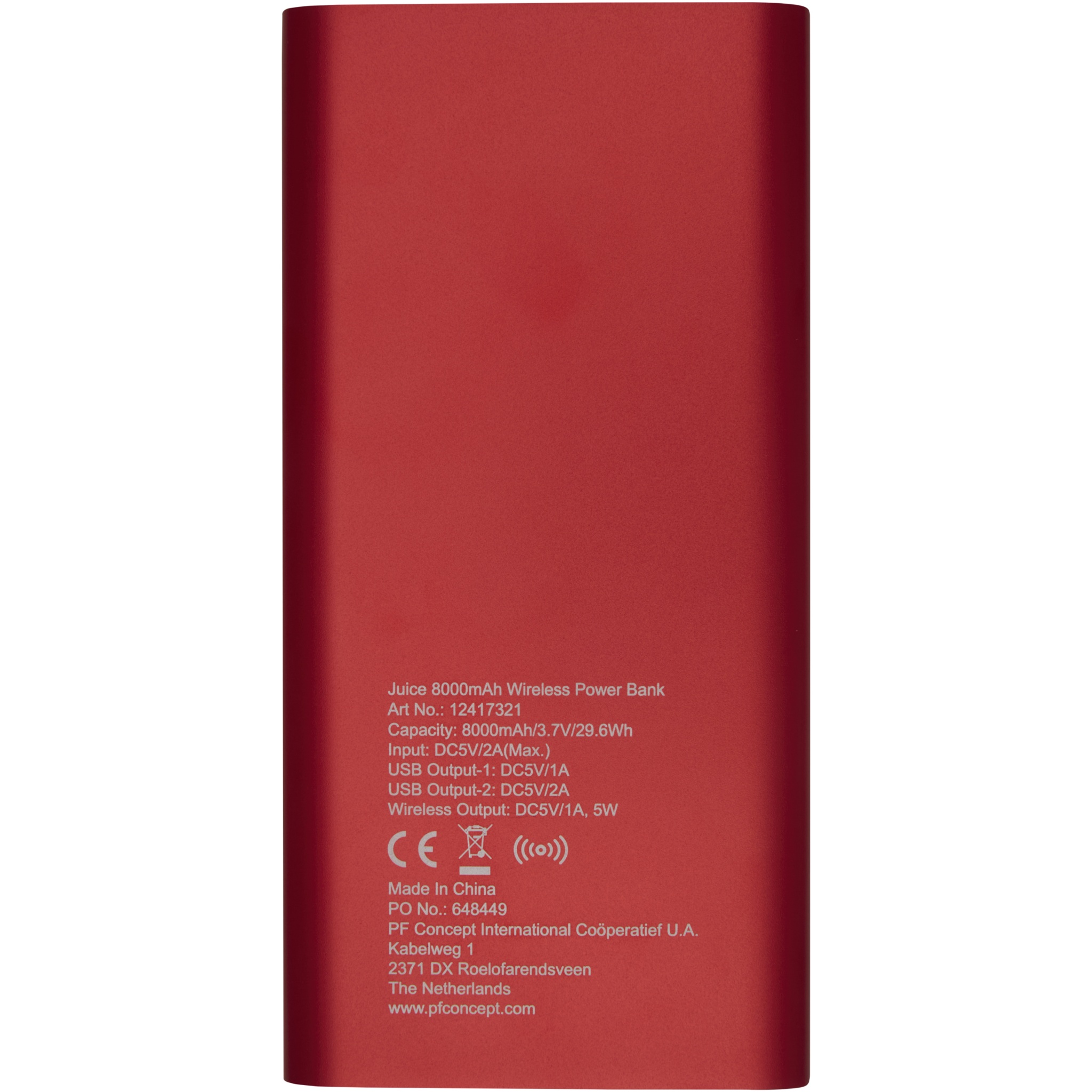 8000mAh powerbank with aluminium housing. Supports 5W wireless charging and also comes with Micro USB output to enable charging by cable. With the 8000mAh lithium polymer battery it can fully charge a smartphone several times. Power indicator that shows energy level at all times. Micro USB port-in: 5V/2A Output: 5V/2A. Wireless output 5W. Including PVC free TPE plastic charging cable. Delivered in a standard gift box.