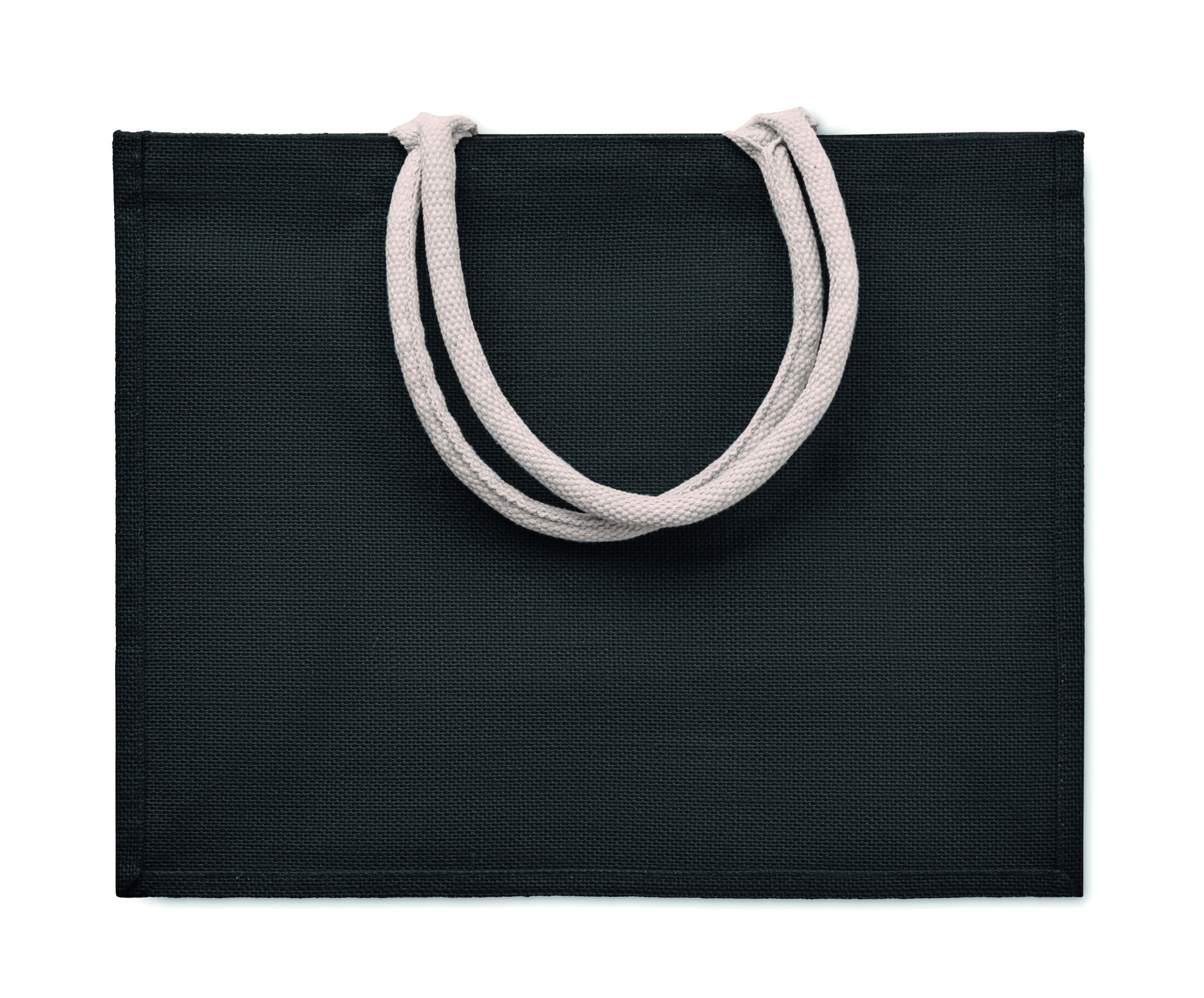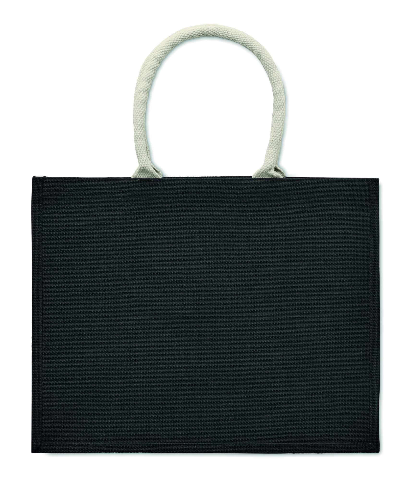 Jute laminated shopping or beach bag with cotton handle. Short handles.