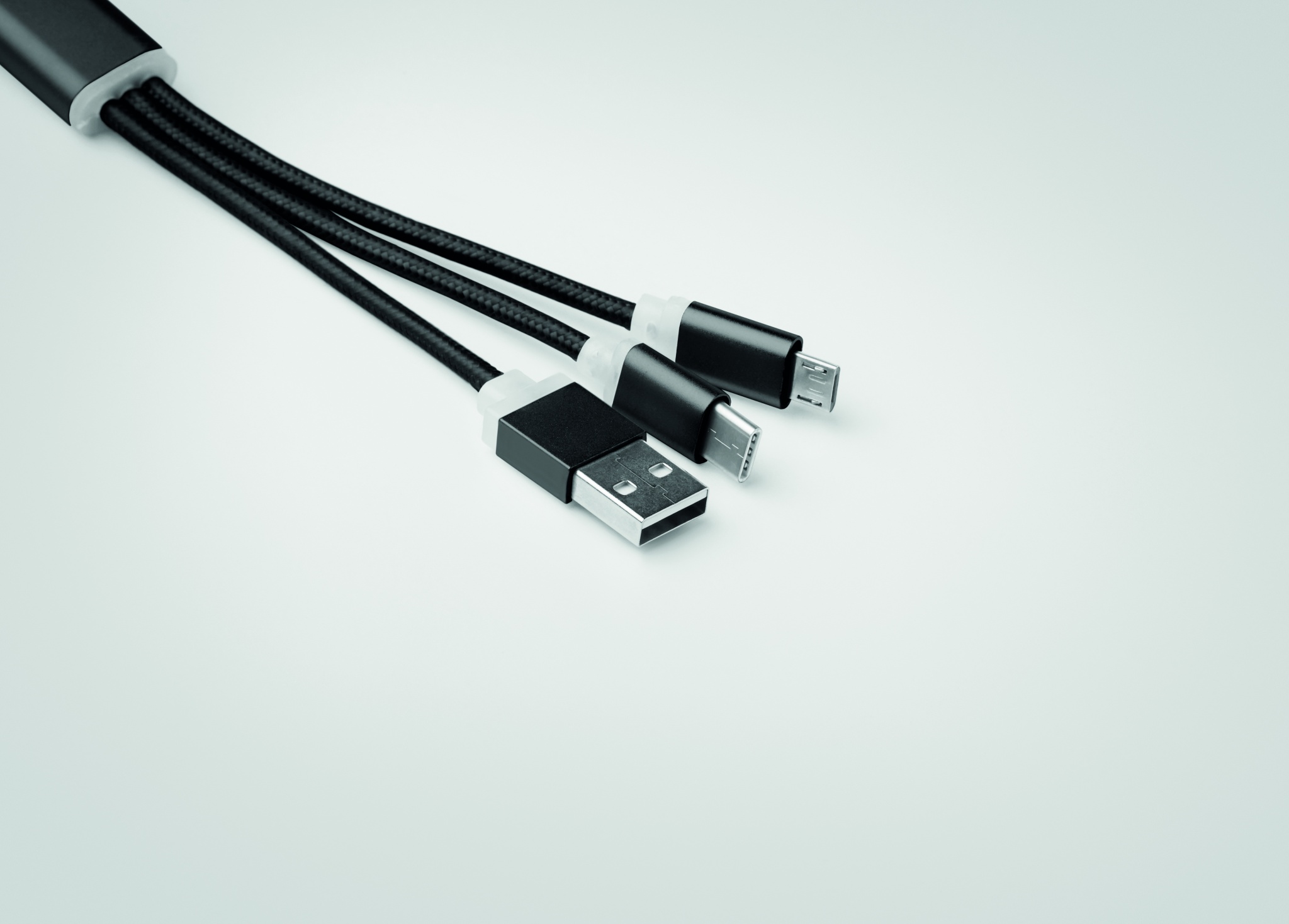 Key ring with charging cable with USB-A to Micro-B (2 in 1 pin) and Type C.
