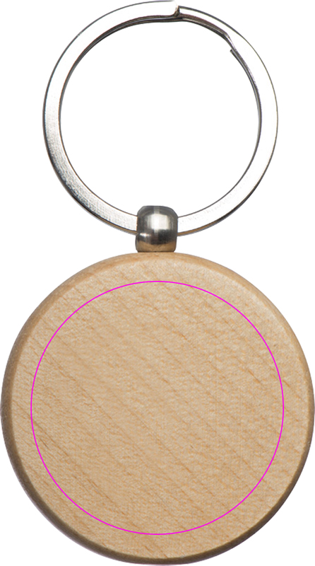 Round beech wood keychain with key ring. Through a laser engraving your logo comes ideally to the fore.