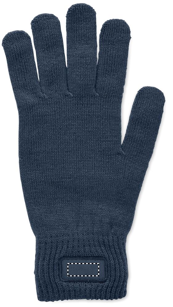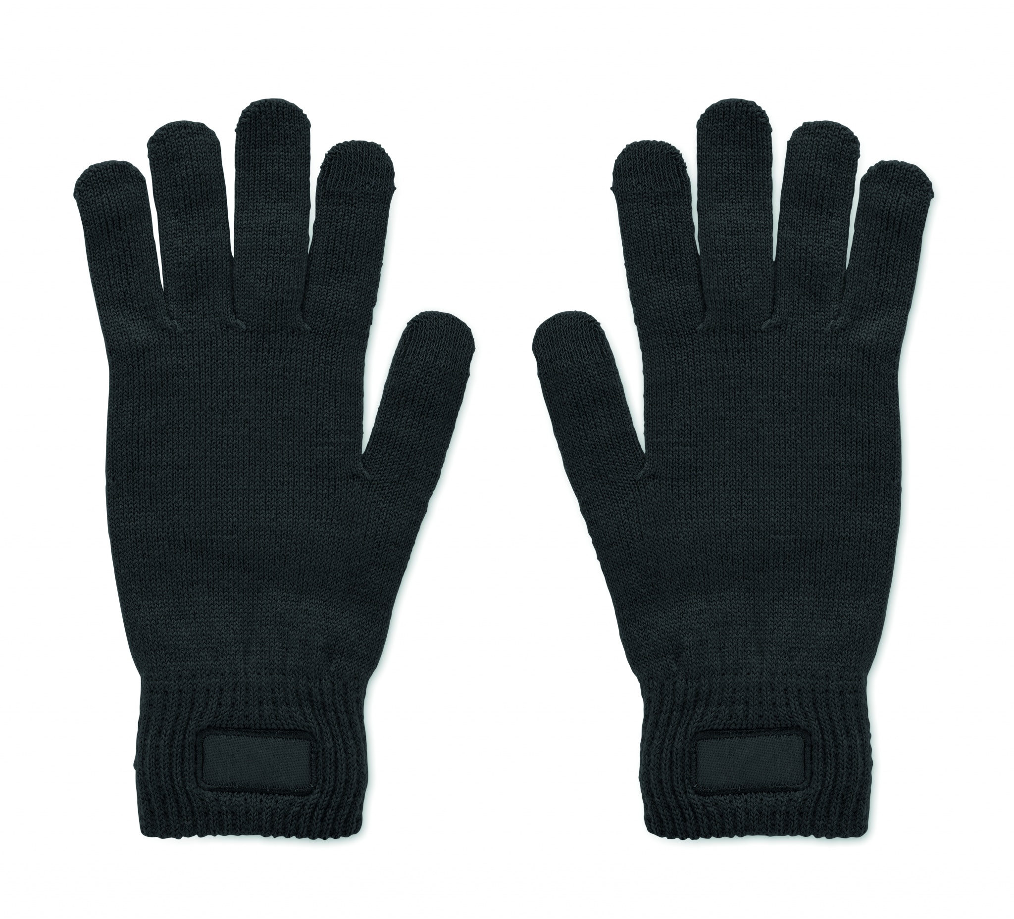 Knitted gloves in soft stretchable RPET polyester with decoration patch.